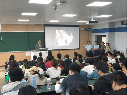 9月26日上午,中国人民解放军驻皖某医院在蚌埠医科大学龙子湖校区开展文职人员招考校园行宣讲活动,第一临床医学院本科生党总支副书记纪小平、年级辅导员及80多名毕业班学生参会。