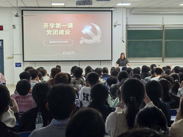 9月27日,第一临床医学院临床医学专业2025年级召开新生党团知识教育主题班会,年级辅导员胡伟、唐雨婷、周梦家及年级全体新生参加会议。