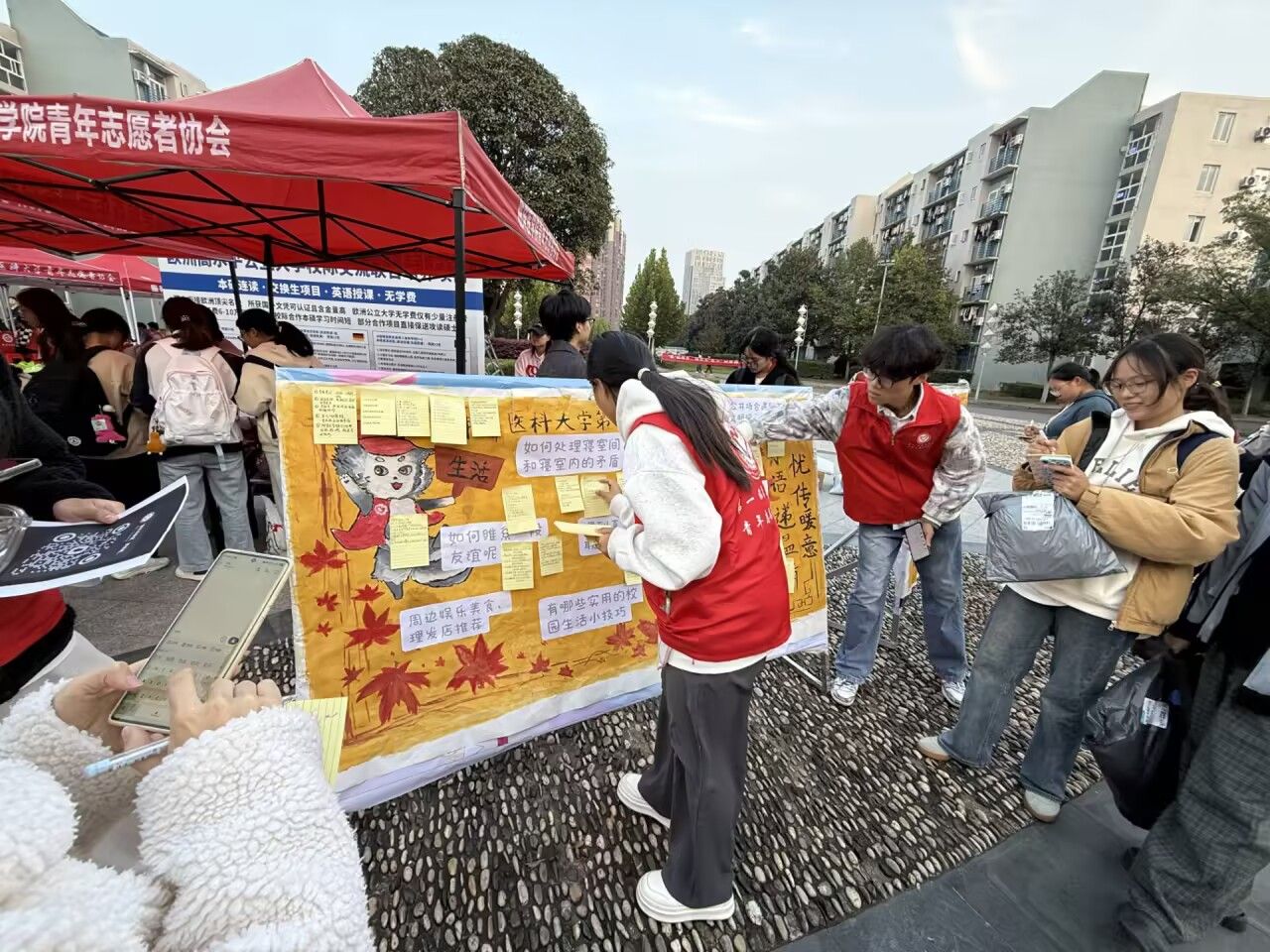 同时开展的“答疑解惑”环节也备受关注。院青协前期收集了同学们在学习规划、校园生活等方面的普遍问题,如“如何平衡学习与睡眠”“快速适应宿舍生活”等,并张贴在展板上供大家回应。同学们积极思考,写下实用建议,形成“校园生活指南”,为解决大家的困惑提供切实帮助。