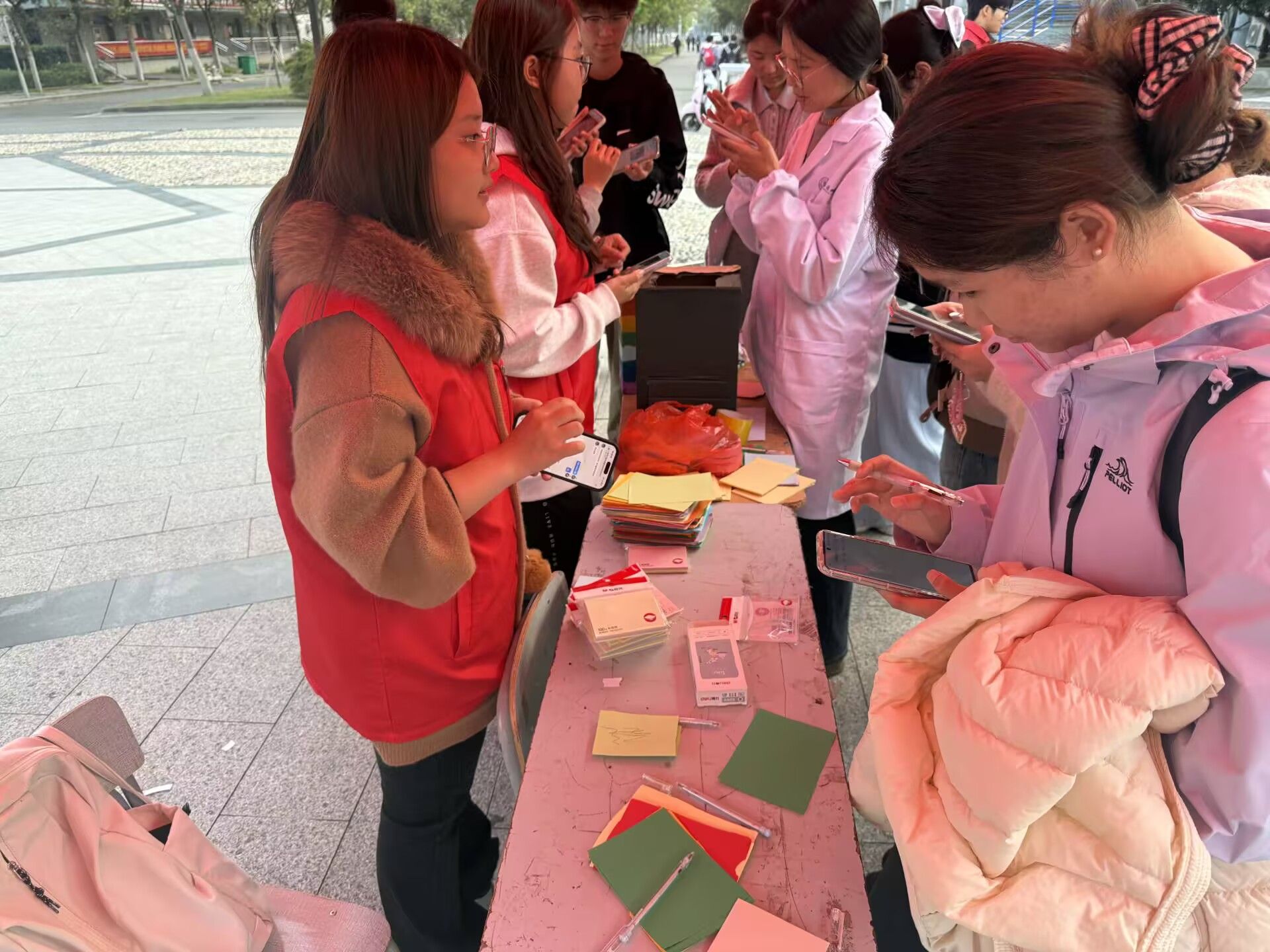 活动现场设置了“纸条互换”环节。同学们在志愿者的引导下,写下祝福与鼓励,投入箱中,并随机抽取他人留言。一句句温暖的话语,如“愿你笔锋所至皆坦途”“在忙碌的医学生活中捕捉小美好”,以无声的方式传递关怀,形成一场陌生的“双向奔赴”。