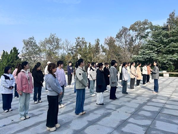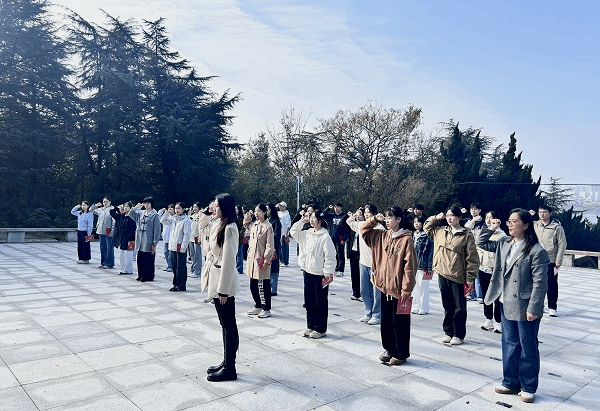 随后,在党支部纪检工作负责人朱梦雨老师的带领下,全体新发展党员面向党旗,高举右拳,庄严宣誓。铿锵有力的誓言在陵园上空回荡,既是对革命先烈的深切缅怀,更是对党的忠诚承诺,表达了新党员们为党的事业奋斗终身的坚定决心。