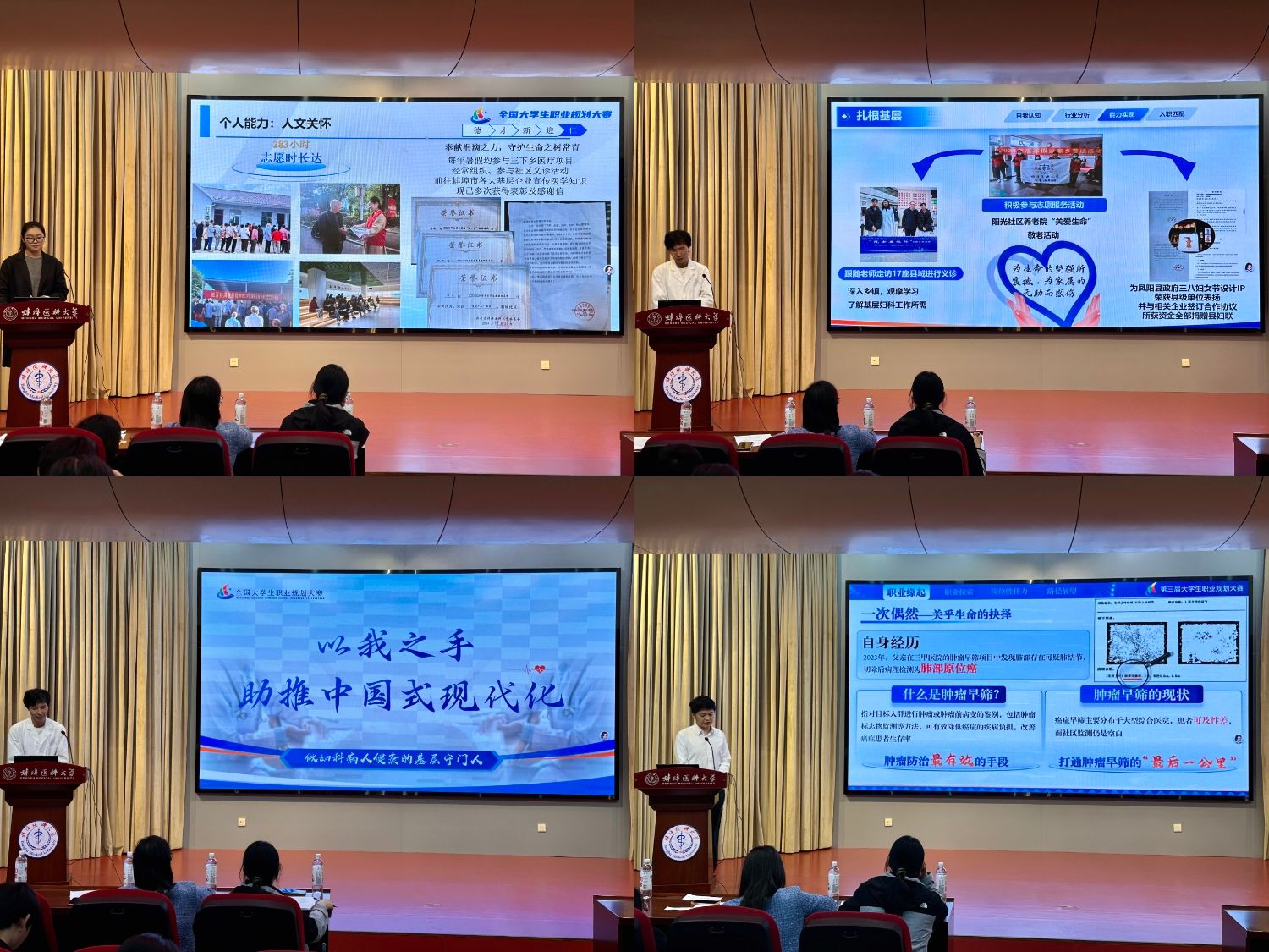 本届大赛设置“成长赛道”与“职业赛道”双轨机制,精准匹配不同发展阶段学子的需求。比赛中,选手们立足医学专业背景,以亲身经历为切入点,生动讲述职业理想的缘起初心、成长路上的奋斗足迹。他们紧扣医疗行业发展动态,客观剖析自身专业优势与核心竞争力,制定分阶段职业目标与实施路径,展现出扎实的规划能力、专业素养与职业洞察力。