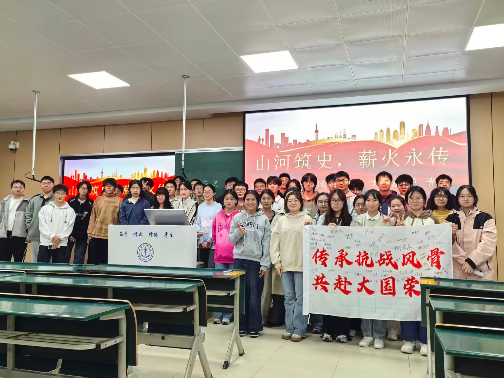 活动尾声,学生们在印有“传承抗战风骨,共赴大国荣光”的横幅前郑重签名,定格初心与担当,随后全体合影留念。