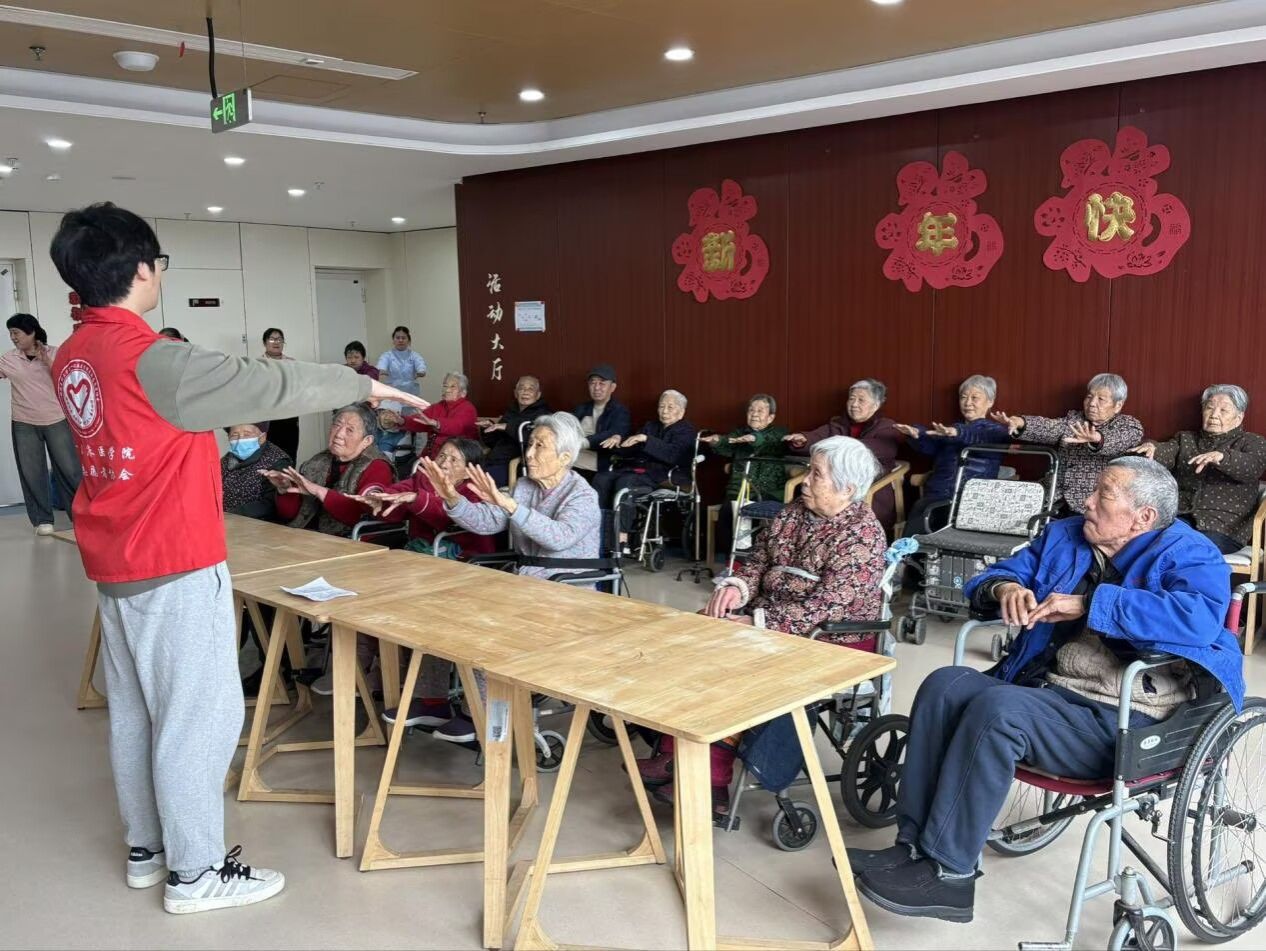 3月8日下午,志愿者携校内制作的手工作品前往蚌埠市第二人民医院康养中心,开展“以爱之名,致敬‘她力量’”慰问服务。志愿者首先向一线女性护理师赠送手工花朵,表达节日问候与感谢。随后,志愿者组织老人学习手指操,帮助他们活动筋骨、促进健康,现场互动温馨有序。