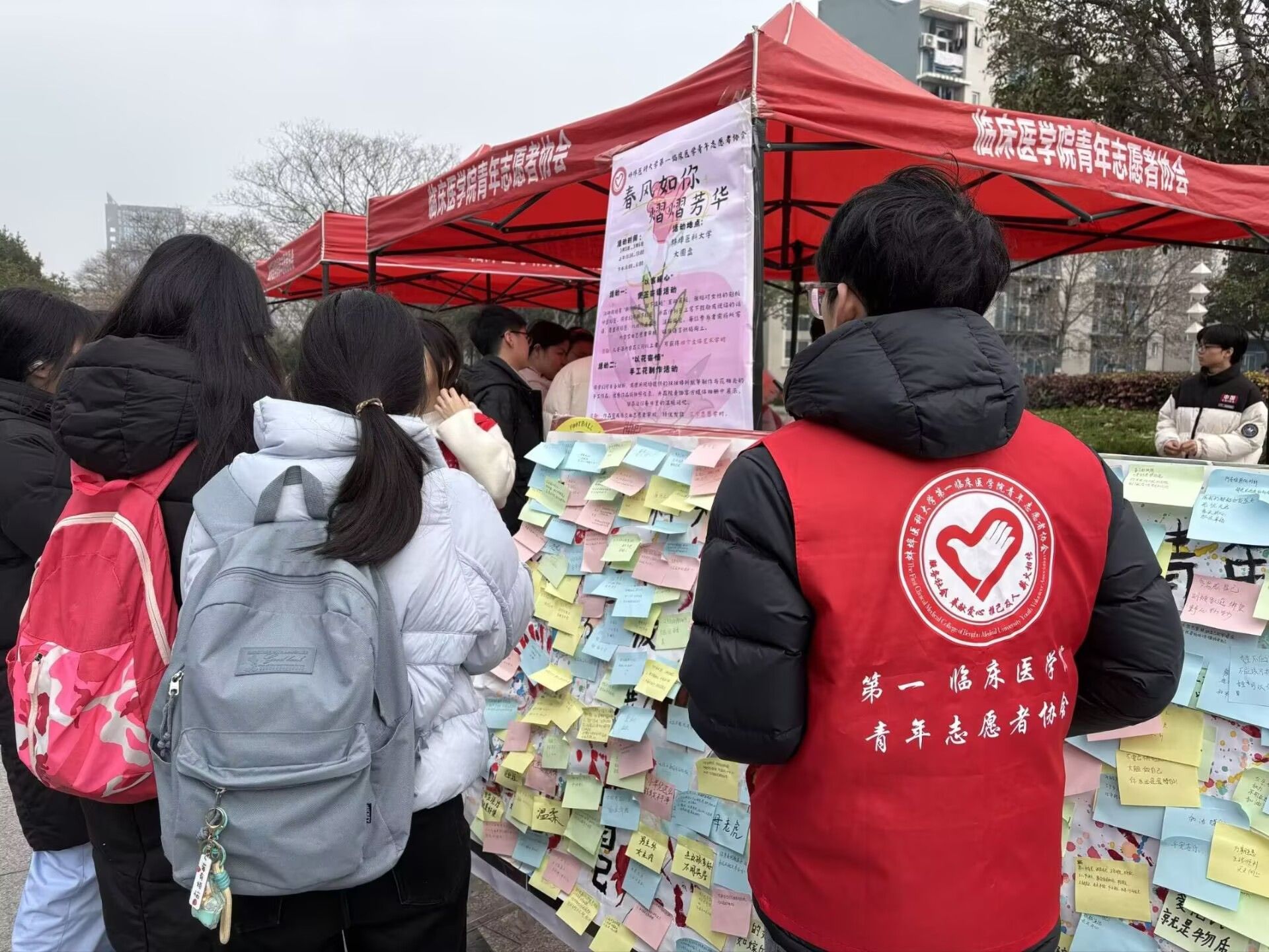 为迎接第116个“三八”国际劳动妇女节,弘扬尊重女性、关爱他人的志愿服务精神,2026年3月5日至8日,蚌埠医科大学第一临床医学院青年志愿者协会组织开展“春风如你,熠熠芳华”主题系列活动。活动涵盖校内互动与校外慰问,旨在引导青年学子致敬女性力量,传递温暖善意,展现青年志愿服务的责任与担当。