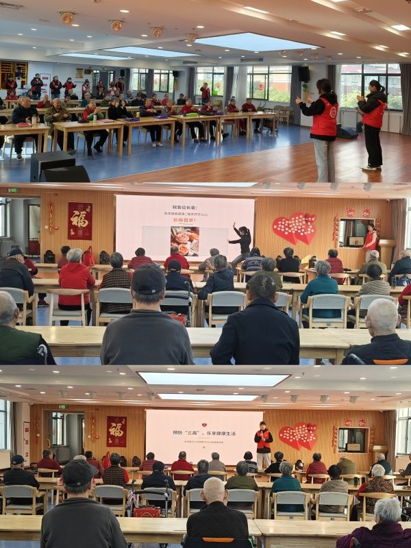3月13日上午,志愿者们首站走进康养中心,将医学专业特色与敬老服务深度融合。围绕 “三高” 疾病防治,志愿者们用通俗易懂的语言,细致宣讲疾病预防、日常护理与科学饮食要点,耐心解答老人关于血压监测、用药安全等实际疑问,为老年群体送上专业的健康指导。