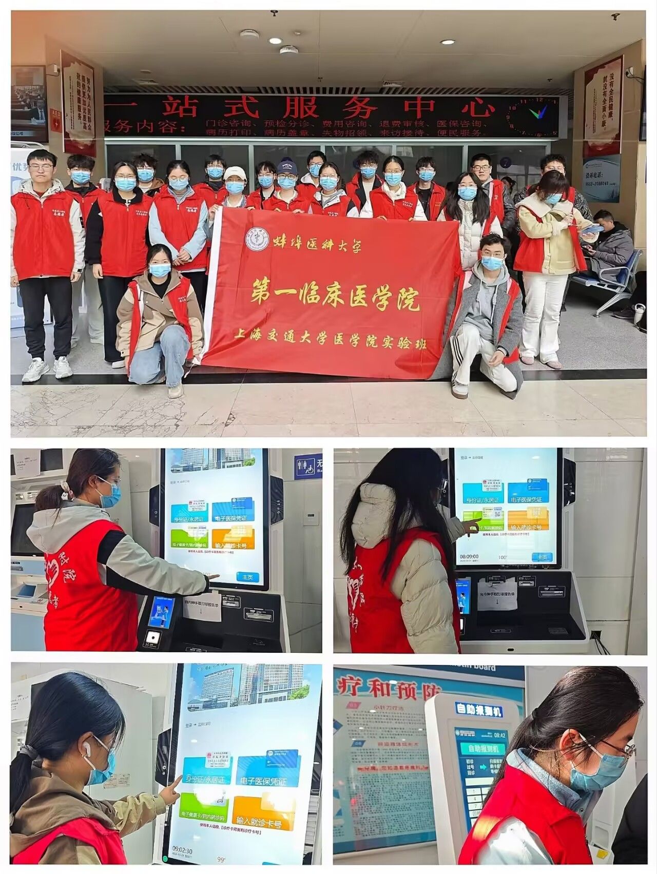 3月21日,24级交医班走进蚌医一附院开展门诊导医志愿服务。经过岗前专项培训,志愿者们分布在门诊大厅、自助机区、诊区及报告打印点,协助患者挂号缴费、引导就诊、答疑解惑,重点帮扶老年群众。大家将医患沟通与医学人文融入服务,有效提升就诊效率、维护就医秩序,在一线实践中读懂“医者仁心”。